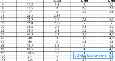 - u laganom VGP cevovodi, debljina varira u opsegu 1,8 - 4,0 mm. Shodno tome, unutrašnji prečnik inčke će biti 25 mm, a spoljni u ovom primjeru će biti 33,5 mm;
