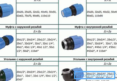 - Kompresione spojnice koje su dostupne sa unutrašnjim i vanjskim navojem. Takvi priključni elementi se koriste za ugradnju sistema za snabdevanje vodom i gasom.