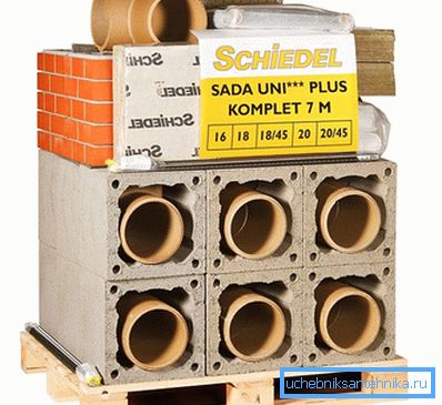 U prvom bloku postavljen je rezervoar za odvod kondenzata, a cevni deo sa otvorom za čišćenje je pričvršćen sa zaptivačem. Ovaj modul je umotan bazaltnom vunom. Svaki naredni modul se stavlja u prethodni i zapečaćen proizvodnim rešenjem. Prekomerna kompozicija koja protiče na površinu cevi obrišite vlažnom sunđerom. Izvan keramičke cijevi spojen je okvir betonskih blokova, povezan sa cementnim peskom malterom. Ukoliko je potrebno, oni su isečeni rupice za pojedine veličine. Pravi deo je napravljen od blokova bez rupa.