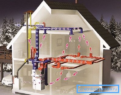 Šema rada je jednostavna: vazduh se usisava u poseban uređaj, tamo gde se zagreva i ulazi u prostorije kroz posebne kanale, udaljavajući hladne vazdušne mase u druge otvore.
