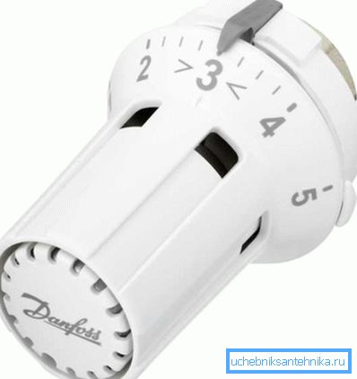 U tom slučaju, ako se vazduh u prostoriji (prolazi kroz rešetku površine drške) zagreva do 21? C, onda štapić pritiska na ventil i zatvara cirkulaciju vode, a kada se vazduh ohladi do 19? C, onda se akcija otvori i cirkulacija nastavlja.