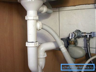 Nadalje, sve je jednostavno: priključimo crevo 3 \ 4 na čaj kanalizacionog sistema, koji smo prethodno presekli u cev koja ide u umivaonik.