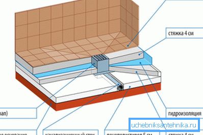 Da bi voda iz cele prostorije u prostoriju ušla u sistem za odvodnjavanje, pod se pravi sa malim nagibom. Postoji nekoliko opcija za lokaciju odvoda kanalizacije: u uglu, u centru, na zid, ali to ne utiče na tehnologiju rada.