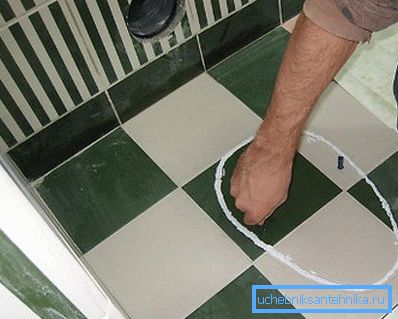 - Nakon završetka obeležavanja, odspojite mlaznicu sa priključka i uklonite toalet na stranu tako da ne ometa dalje radove. Na mestima na kojima treba pričvrstiti sidrne vijke, napravite rupe, a pločica je najbolje proći kroz bušilicu ili perforator, ali u režimu bušenja tako da ne pukne.