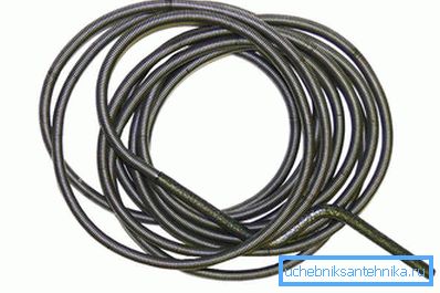 Fleksibilni vodovodni kabel, kao i fleksibilno vratilo ili fleksibilno crevo. Takav uređaj je mnogo pogodniji i efikasniji od kablovskog kabla. Konstrukcija je sledeća: metalna spirala je navijena u 1 ili više slojeva preko čeličnog jezgra. Dozvoljena dužina proizvoda je 60 m, a prečnik je do 28 mm.