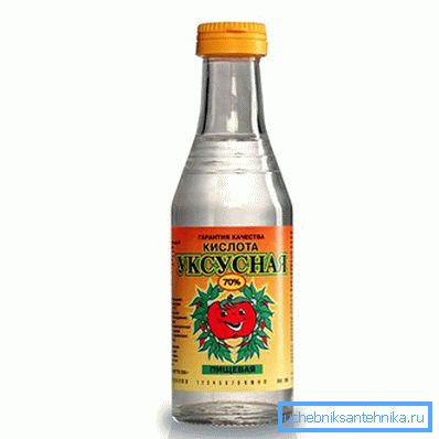 Jedan od glavnih zagađivača ovog sanitarnog uređaja je kamenac. Ako vodovod se periodično očisti, onda možete ukloniti kamen sa sirćetom. Najbolje je koristiti 70% sirće u ove svrhe, međutim, u odsustvu takvih, možete koristiti 9%.