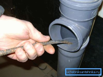 - Sada, da vidimo kako čišćenje toaleta od blokade svojim rukama, ako komšije imaju sve u redu i voda ne pada samo od vas, u svakom slučaju, vaš stan je niži u problemskoj oblasti. Klip, naravno, neće pomoći ovde, stoga se koristi sanitarni čelik ili plastični kabl da bi se uklonila blokada kanalizacionog sistema. Samo njegov kraj treba valjati da ne grebete cev, kako to zahtevaju instrukcije, jer će kasnije ovo biti platforma za odlaganje fekalija i sitnih ostataka.