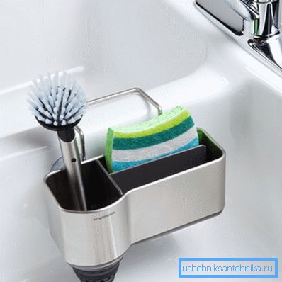 Svaka domaćica je upoznata sa situacijom kada morate sakupljati tepihe, četke, sunđere i ostala sredstva za pranje kroz kuhinju. Organizator za umivaonik, upravo dizajniran za razumno i praktično čuvanje ovog inventara.
