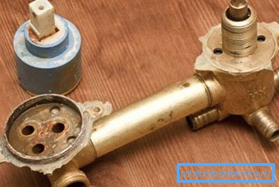 - Isključite navrtku od mesinga, koji pritiska kertridž na telo miksera.