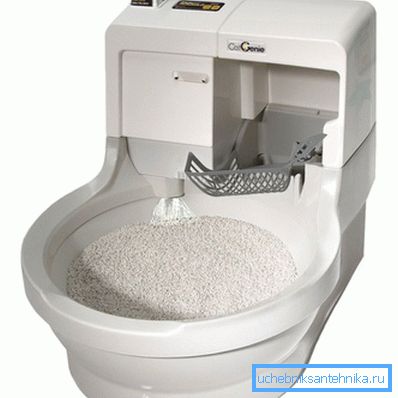 - ako budžet nije slaba tačka, onda se pažnja može posvetiti toaletovom toaletu s umivaonikom, ovo je zaseban sanitarni uređaj sa automatskim flushom nakon što je mačka izvršila svoje poslovanje.