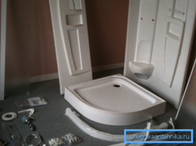 Kada se odlučimo o karakteristikama opreme i uređaja, razmislite o tome kako je tuš instaliran u prostoriji. Kao što je već rečeno, instrukcija je u velikoj mjeri određena tipom i konfiguracijom korištene strukture, stoga, kao primjer, razmislite kako se vrši instalacija modifikacije sa ugaonim aranžmanom.