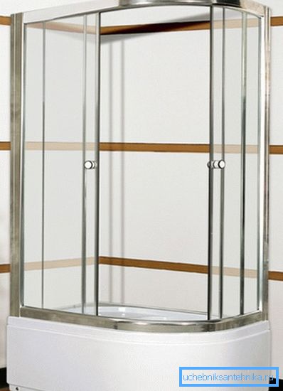 | Vrata | Mogu se napraviti od stakla ili akrila, prva opcija je pouzdanija i izdržljiva, ali je cijena mnogo veća, a druga opcija je jeftinija, ali njegova pouzdanost i otpornost na udarce ostavljaju mnogo želja. Ako na površini postoji zaštićeni premaz, onda ima vodootporni efekat, a depozit na takvim strukturama je značajno manje od onih koji se ne tretiraju. |