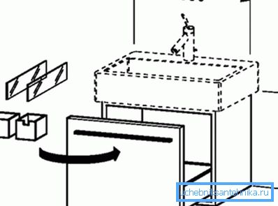 Nakon montaže ormara, možete ugraditi umivaonik. U zavisnosti od modifikacije nameštaja, sudoper se može obesiti zasebno, ili obrnuto, može se ugraditi direktno u površinu ormana.