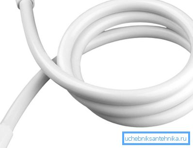 - Tuš crevo. Mikseri su opremljeni prefabrikovanim crevima od nerđajućeg oklopa i gumenom jezgrom, a plastični PVC-om.