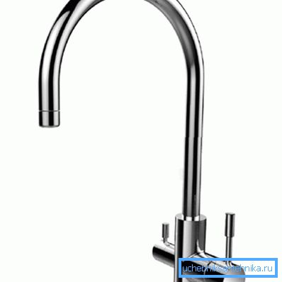 | Kuhinja | Pogodan je mikser sa visokim okretanjem, sve dok spuža dostiže sredinu umivaonika. Rotacioni dizajn daje priliku da koristi kran za dvosmerni sudoper. Visok doravak će vam omogućiti da lako opere bilo kakvu posudu ili izvadite vodu u njega. Kuvanje može biti jednokratno ili dvaput. Poslednja opcija, koja je konstrukcija sa dva ventila, naziva se klasična. Jednostavan za upotrebu i pouzdan u radu. Sa ručicama možete podesiti temperaturu i pritisak vode što je preciznije moguće. Istovremeno, dizajn sa jednom rukohvatom tokom kuvanja je mnogo funkcionalniji. Možete otvoriti vodu, odabrati željenu temperaturu ili pritisak vode jedne strane ili čak i sa lakatom. Takođe možete staviti slavinu sa dispenzerom (dispenzer) i specijalnom slavinom kroz koji će filtrirana voda za piće proći. |