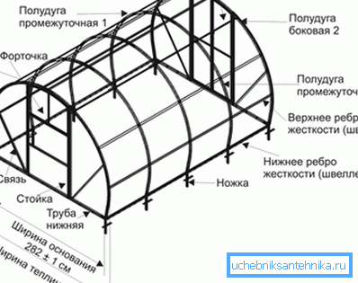 Dužina cevi od polipropilena u prodavnici je 4 m, ali ako nalazite ovakav luk previsok, možete ga skratiti za metar. Ali i ovde će biti moguće ići na drugi način - povećati poprečnu osnovnu šinu za 50 cm, odnosno širinu vašeg staklenika umjesto jednog i po doći će do dva metra.