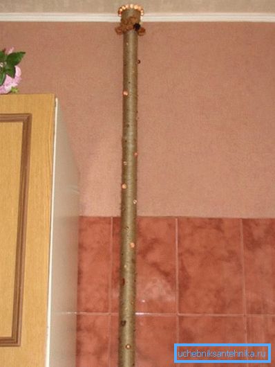 Ovo se obično odnosi na stare čelične cijevi za grijanje korištene u domovima u prošlosti. Oni, zajedno sa vodovima za napajanje radijatora, prenose toplotu u vazduh u prostoriji. Zbog toga se prilikom zatvaranja dekorativnih kutija javljaju njihova izolacija. U zimskom stanu temperatura neće biti mnogo, ali niža nego pre izmene.