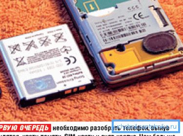 Savjet! Ako je vaš model telefona opremljen izmenjivom baterijom, morate ga iskopčati što je pre moguće. Činjenica je da čak i u isključenom stanju, neki čipovi na tabli i dalje dobijaju snagu, a voda može izazvati kratak spoj, što će dovesti do njihovog neuspjeha.