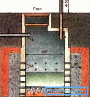 - Otkopamo jamu, glavno stanje za koje je njegovo produbljivanje ispod nivoa zamrzavanja tla i zadržavanje najmanje 100 cm od podzemnih voda. Izabrali smo dimenzije zasnovane na količini dnevnog protoka otpadnih voda.