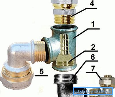 Najjednostavniji ejektor se može sastaviti na bazi tee i zadnjeg dima - ovi detalji će služiti kao Venturi cev u veoma pojednostavljenoj verziji. Oblikovani elementi za ejektor mogu se koristiti od različitih materijala (metal, plastika). U ovom slučaju, dizajn ejektora sastavlja se od mesinganog čepa i okova za metalne cijevi.