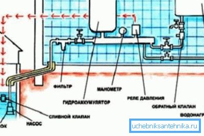 | Za bunare i plitke bunare | Za takve izvore vode potrebna vam je konvencionalna pumpna stanica, koja se sastoji od sledećih elemenata: