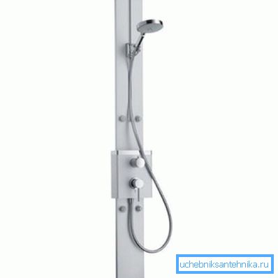 | Stalci | Tuš stalak sa termostatom, zapravo istom slavinom, jedina tuš glava koja nije povezana sa fleksibilnim crevom, ali sa krutom cijevom. Istina, neki modeli mogu dodatno imati fleksibilan tuš. Rack može biti instaliran kako u kupatilu, tako iu stacionarnom tušu. U drugom slučaju, uređaj može biti bez izliva. |