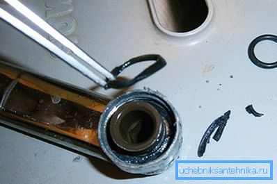 Posle toga uklonimo cijelu mikser i mijenjamo gumenu zaptivku, bolje je samo dva - jedan zaptivati sa gornje strane, a drugi - sa donje strane umivaonika.