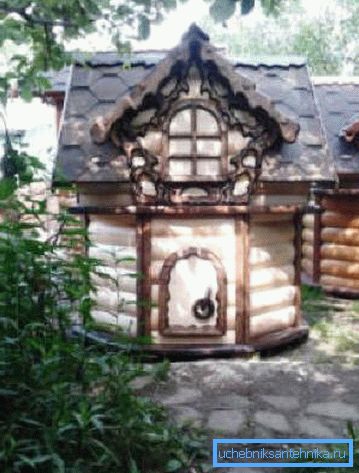 Za ukrašavanje ovakvog proizvoda mogu biti cvijeće i biljke tipa penjanja. Nedaleko od ovog remek-dela će izgledati odgovarajuća izrezana klupa. A ako uspete da nađete stari kolovrat, onda možete da napravite divnu kompoziciju u vašem dvorištu.