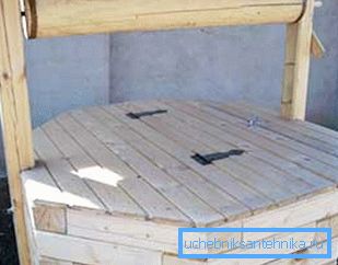 Drveni proizvod, možda, bolje štiti bunar, a dekorativne osobine drveta teško mogu da se podudaraju. Po pravilu, ovaj dizajn je drveni štit, ojačani ispod sa rebrima. Izrađen je od moćne ploče koja obezbeđuje proizvod visokom pouzdanošću i sigurnošću.
