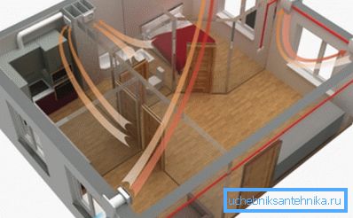- Jedinstvena distribucija toplote u prostorijama. Jedan od najvažnijih zadataka ventilacionog sistema je osigurati istu temperaturu u kući (stanu). Pravilno dizajniran sistem, opremljen ulaznim, prelivnim i izduvnim priključcima, omogućava miješanje hladnog i toplog vazduha.