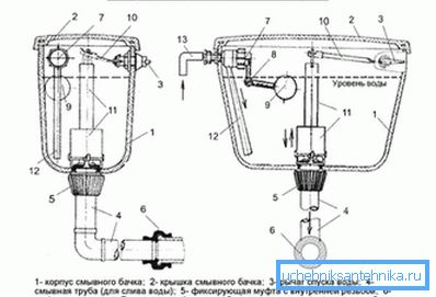 Ako uporedimo stare modele sa modernim, možemo pronaći jednu karakterističnu karakteristiku. Zastareli modeli rezervoara su fiksirani direktno uz pomoć fitinga. Opremljen je posebnim štapom. Princip njegovog rada zasnovan je na sistemu povratnog pritiska. Što se tiče modernih dizajna, oni imaju nešto drugačiju konfiguraciju.