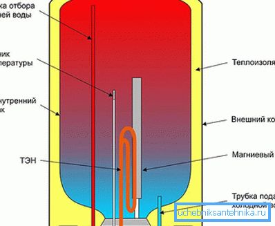 U blizini grejnog elementa nalazi se magnezij anoda. Ovo je mala metalna šipka koja sprečava formiranje skale na zidovima. Prednosti ovog rešenja su jednostavna instalacija, kao i odsustvo potrebe za koordiniranjem instalacije različitim uslugama. Rezervoari mogu imati i horizontalnu i vertikalnu lokaciju.